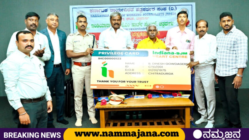 ನಗರದ ಪತ್ರಿಕಾ ಭವನದ ಡಾ.ಬಿ.ಆರ್.ಅಂಬೇಡ್ಕರ್ ಸಭಾಂಗಣದಲ್ಲಿ ಜಿಲ್ಲಾ ಕಾರ್ಯನಿರತ ಪತ್ರಕರ್ತರ ಸಂಘ ಹಾಗೂ ಇಂಡಿಯಾನಾ ಎಸ್.ಜೆ.ಎಂ. ಹಾರ್ಟ್ ಸೆಂಟರ್ ಸಹಯೋಗದಲ್ಲಿ ಸೋಮವಾರ ಆಯೋಜಿಸಲಾಗಿದ್ದ ಕಾರ್ಯಕ್ರಮದಲ್ಲಿ ಉಚಿತ ಹೃದಯ ರೋಗ ತಪಾಸಣೆ ಕಾರ್ಡ್ಗಳನ್ನು ವಿತರಿಸಿ ಅವರು ಮಾತನಾಡಿದರು.